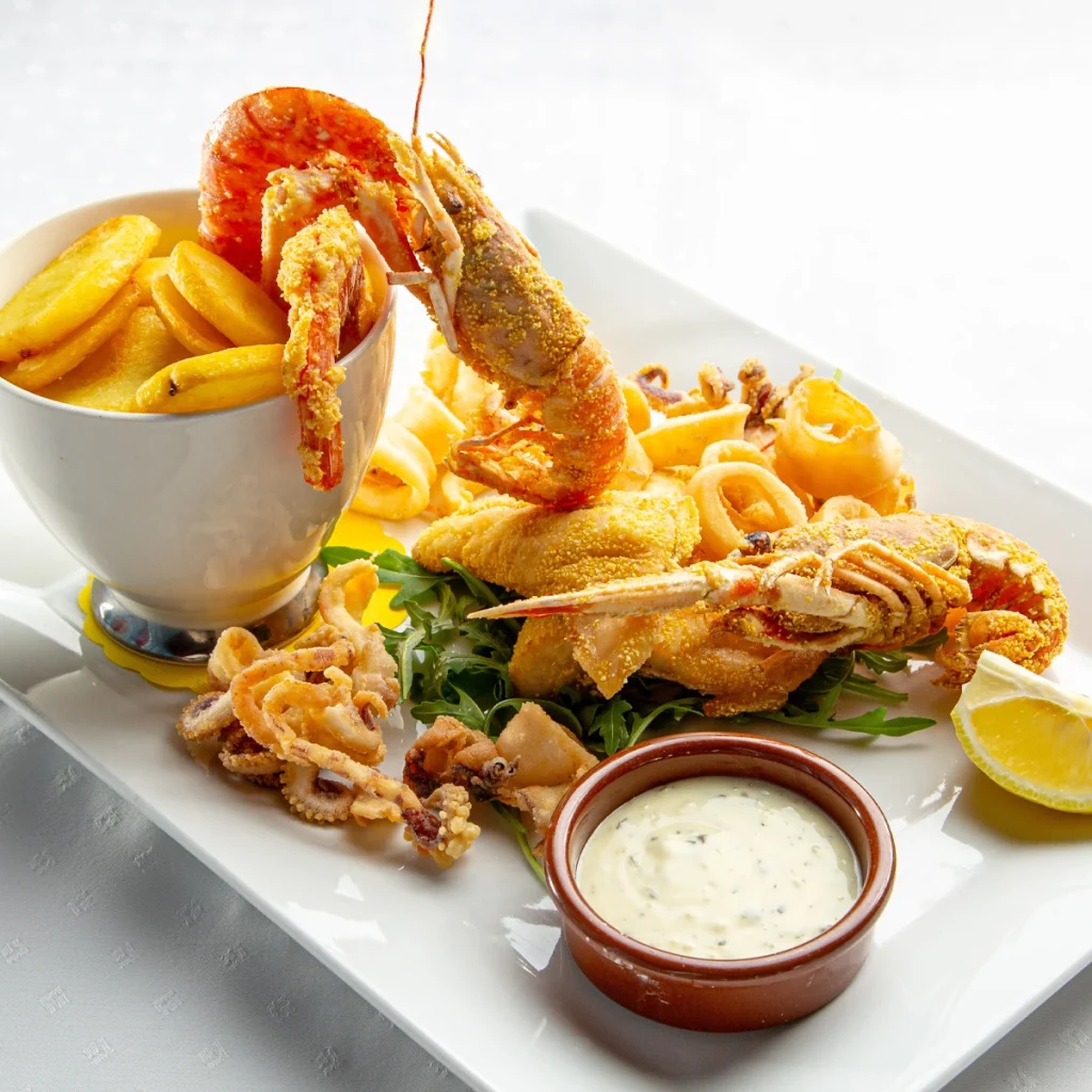 Fritto misto (Garnelen, Scampi, Tintenfisch, Fisch)