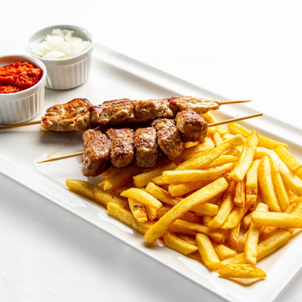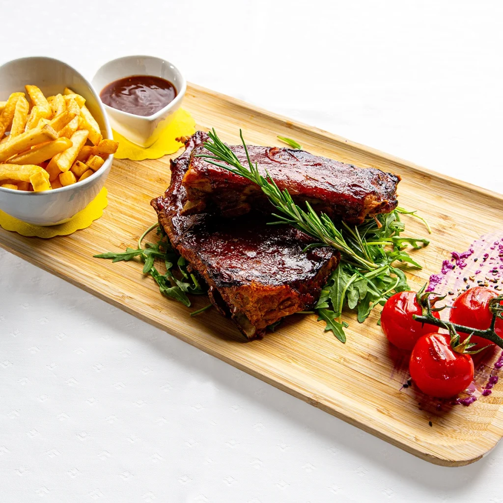 Costolette di agnello, polenta con pomodori secchi e Wok di verdure