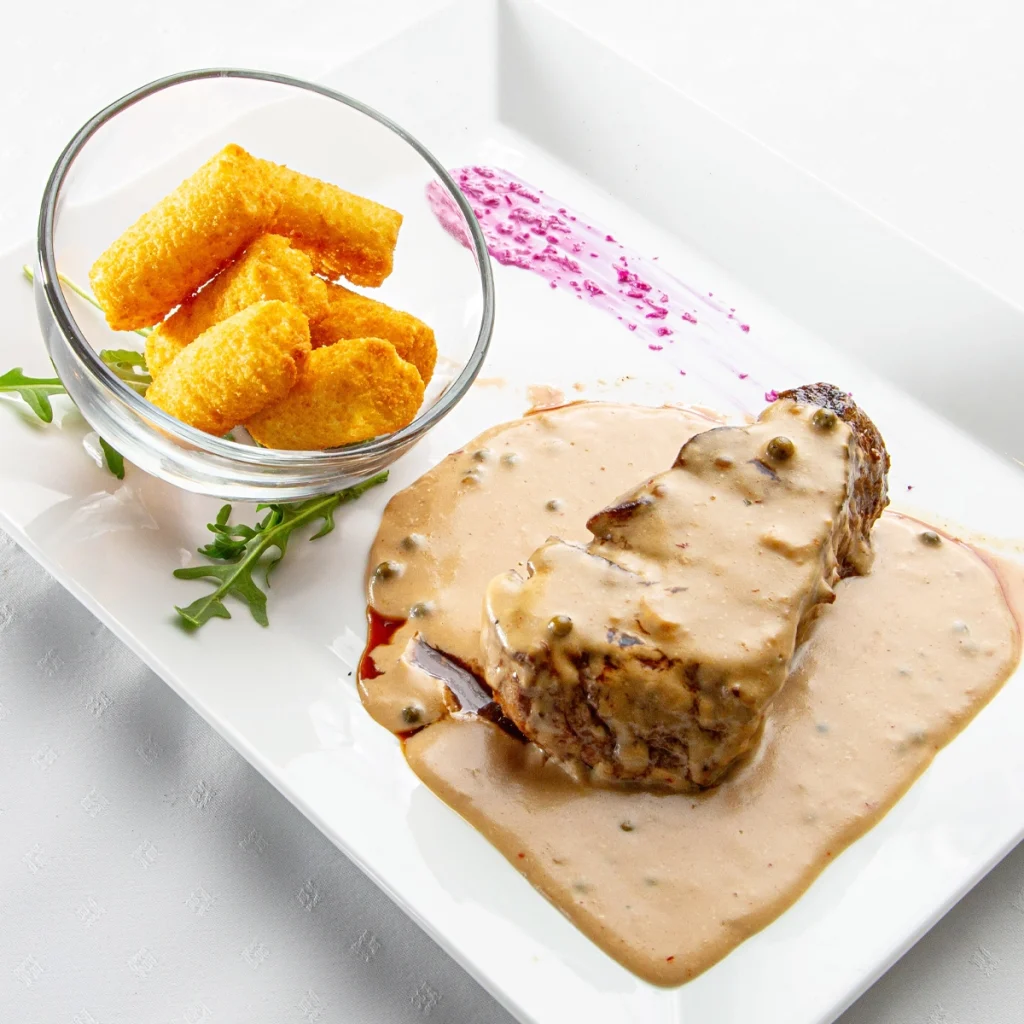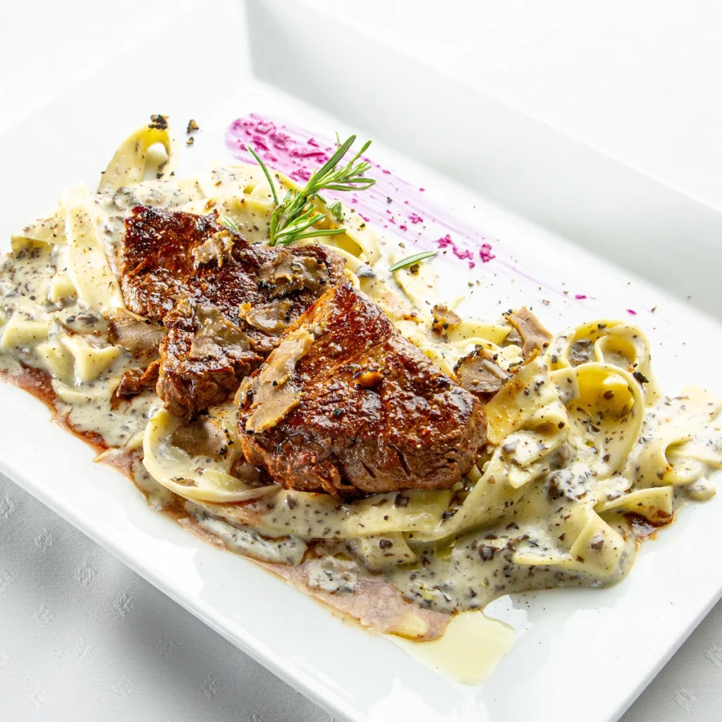 Bistecca Turnedo e tagliatelle con crema di tartufo